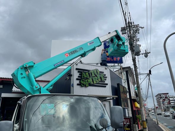 スタッフブログ2022.09.11 オートスピリット看板出来上がりました。 こんにちは(^▽^)/オートスピリット西垣です。 今日も良い天気でしたね! 早速ですがオートスピリット屋根上の看板が出来上がりました。 建物の色合いともマッチして良い看板が出来あがりました。