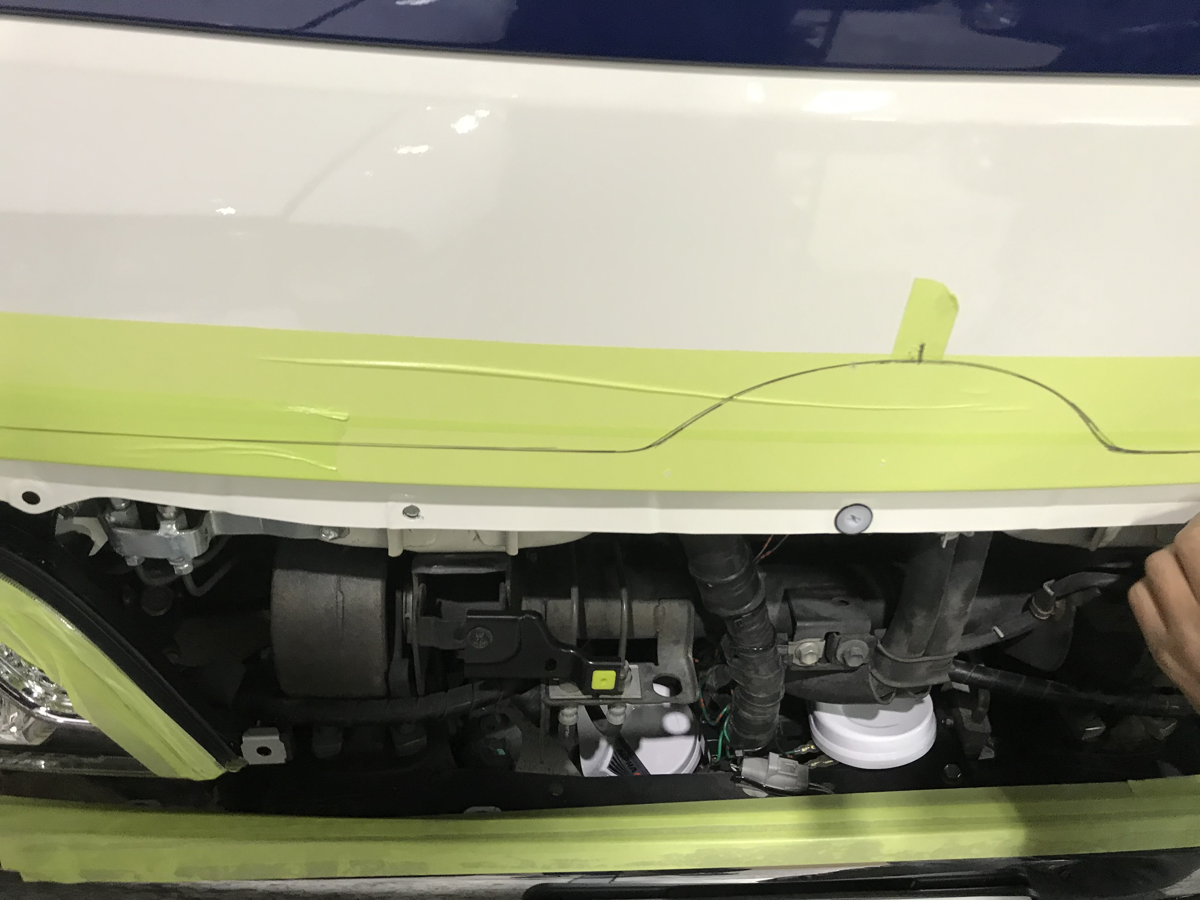 実績 実績【鈑金塗装】2020.11.22 キャンピングカムロード・新型マスクに!守口市・オートスピリット こんにちは( ´∀` )今日も良い天気で 良かったです。 3連休は、寂しくブログ、 更新中です。 早速のご紹介ですが トヨタカムロードキャンピングカーの フロント周りを新型デュトロに 進化中です! 先ずは、フロントバンパーに ヘットライトを交換しました。 ホーンもアルファーホーンに交換 フォグランプはLED化 グリルがちょっと面倒です。 ボディの取付穴を拡げて加工します。 グリルも加工します。 旧型と新型を合体です! 合体完了です。 とりあえず仮止めです! ラインも塗装しました。 もうしばらく完成までお待ち下さい。 安心・安全・親切・丁寧・オートスピリット