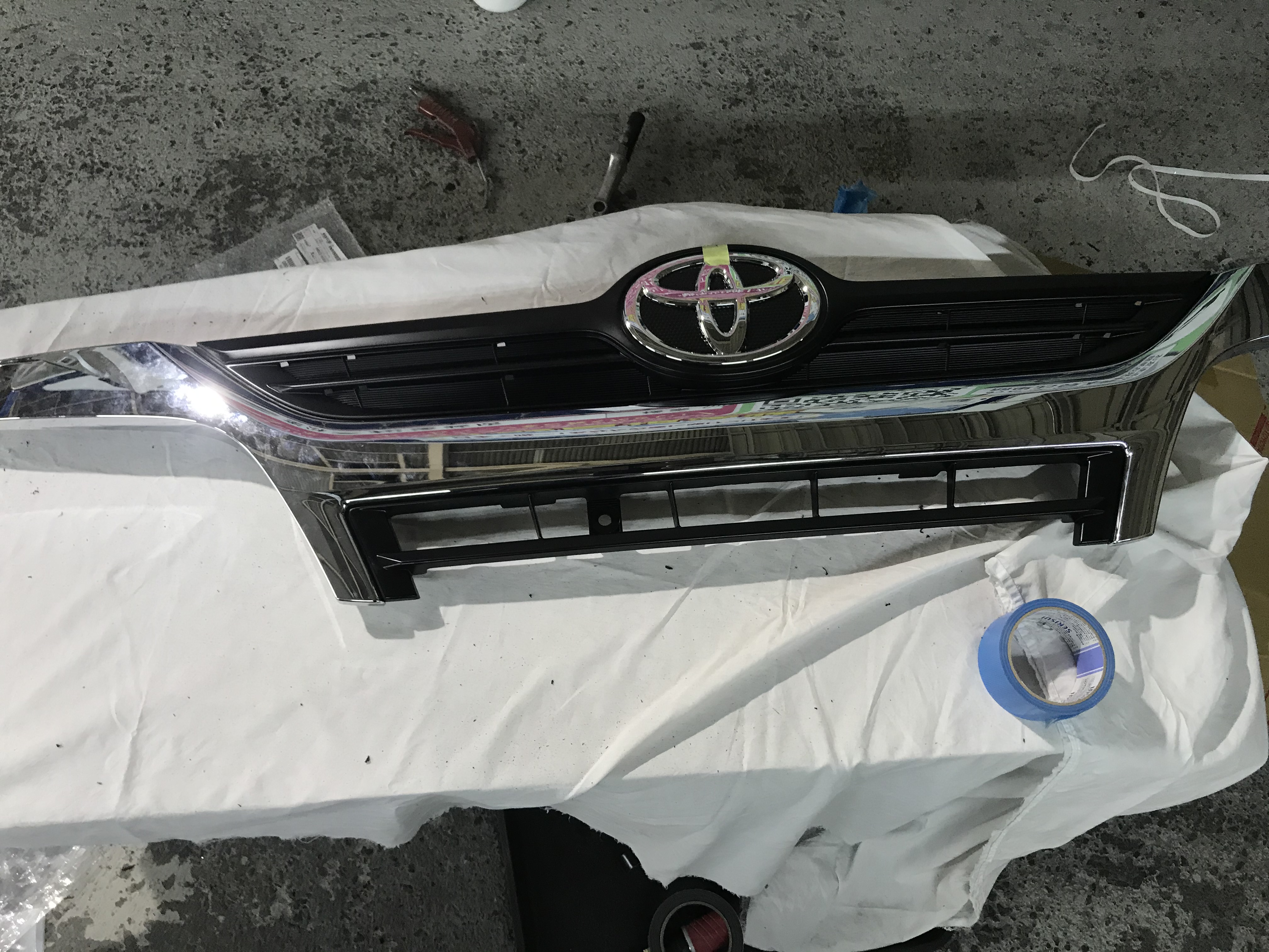 実績Work ホーム » 実績 » 実績【鈑金塗装】 » キャンピングカムロード・新型マスクに!守口市・オートスピリット 実績 実績【鈑金塗装】2020.11.22 キャンピングカムロード・新型マスクに!守口市・オートスピリット こんにちは( ´∀` )今日も良い天気で 良かったです。 3連休は、寂しくブログ、 更新中です。 早速のご紹介ですが トヨタカムロードキャンピングカーの フロント周りを新型デュトロに 進化中です! 先ずは、フロントバンパーに ヘットライトを交換しました。 ホーンもアルファーホーンに交換 フォグランプはLED化 グリルがちょっと面倒です。 ボディの取付穴を拡げて加工します。 グリルも加工します。 旧型と新型を合体です! 合体完了です。 とりあえず仮止めです! ラインも塗装しました。 もうしばらく完成までお待ち下さい。 安心・安全・親切・丁寧・オートスピリット エブリィ廃車お買取り。 出張オイル交換・エブリィ・守口市・オートスピリット 実績一覧 車検実績 修理実績 鈑金塗装実績 車販売実績 廃車買取実績 レンタカー実績 タイヤ交換 最近の投稿 ハイラックスUSタンドラ仕様 オートスピ... 事故・鈑金塗装・レッカー引取り・オートス... 鈑金塗装・メルセデスベンツ・オートスピリ... リアゲート交換・守口・門真・寝屋川・オー... ミゼット・ホットロッド 板金塗装・アルファード・守口市・オートス... キャンピングカムロード・新型マスクに!守... ブルーバード事故・守口市・オートスピリッ... エブリィーバン板金塗装・守口・オートスピ... BMWバンパー塗装・守口・オートスピリッ... 過去の記事 月を選択 2026年1月 (1) 2025年12月 (7) 2025年11月 (2) 2025年10月 (8) 2025年9月 (8) 2025年8月 (7) 2025年7月 (5) 2025年6月 (3) 2025年5月 (10) 2025年4月 (3) 2025年3月 (4) 2025年2月 (5) 2025年1月 (3) 2024年12月 (5) 2024年11月 (2) 2024年10月 (10) 2024年9月 (1) 2024年8月 (5) 2024年7月 (8) 2024年6月 (4) 2024年5月 (3) 2024年4月 (6) 2024年3月 (6) 2024年2月 (4) 2024年1月 (4) 2023年12月 (6) 2023年11月 (11) 2023年10月 (22) 2023年9月 (13) 2023年8月 (11) 2023年7月 (10) 2023年6月 (6) 2023年5月 (12) 2023年4月 (13) 2023年3月 (11) 2023年2月 (4) 2023年1月 (15) 2022年12月 (12) 2022年11月 (10) 2022年10月 (13) 2022年9月 (9) 2022年8月 (2) 2022年7月 (7) 2022年6月 (10) 2022年5月 (2) 2022年4月 (5) 2022年3月 (4) 2022年2月 (4) 2022年1月 (11) 2021年12月 (10) 2021年11月 (12) 2021年10月 (5) 2021年9月 (10) 2021年8月 (6) 2021年7月 (8) 2021年6月 (9) 2021年5月 (9) 2021年4月 (7) 2021年3月 (10) 2021年2月 (5) 2021年1月 (3) 2020年12月 (13) 2020年11月 (28) 2020年10月 (3) 2020年9月 (9) 2020年8月 (32) 2020年7月 (59) 2020年6月 (4) 2020年5月 (4) 2020年4月 (4) 2020年3月 (33) 2020年2月 (15) 2020年1月 (20) 2019年12月 (17) 2019年11月 (31) 2019年10月 (9) 2019年9月 (1) 2019年8月 (3) 2019年7月 (3) 2019年5月 (29) 2019年4月 (3) 2019年3月 (1) 2019年2月 (8) 2019年1月 (5) 2018年12月 (16) 2018年11月 (13) 2018年10月 (1) 2018年9月 (4) 2018年8月 (8) 2018年7月 (16) 2018年6月 (35) 2018年5月 (23) 2018年4月 (2) 2018年3月 (8) 2018年2月 (15) 2018年1月 (25) 2017年12月 (37) 2017年11月 (21) 2017年10月 (7) 2017年9月 (33) 2017年8月 (45) 2017年7月 (51) 2017年6月 (51) 2017年5月 (31) 2017年4月 (33) 2017年3月 (58) 2017年2月 (42) 2017年1月 (18) 2016年12月 (53) 2016年11月 (30) 2016年10月 (21) 2016年9月 (13) 2016年8月 (12) 2016年7月 (27) 2016年6月 (34) 2016年5月 (23) 2016年4月 (21) 2016年3月 (15) 2016年2月 (30) 2016年1月 (55) 2015年12月 (45) 2015年11月 (27) 2015年10月 (47) 2015年9月 (24) 2015年8月 (36) 2015年7月 (29) 2015年6月 (40) 2015年5月 (36) 2015年4月 (58) 2015年3月 (18) 2015年2月 (55) 2015年1月 (78) 2014年12月 (49) 2014年11月 (42) 2014年10月 (50) 2014年9月 (3) 2014年8月 (3) 2014年7月 (11) 2014年6月 (13) 2014年5月 (31) 2014年4月 (21) 2014年3月 (1) 2014年2月 (60) 2014年1月 (23) 2013年12月 (17) 2013年11月 (5) 2013年10月 (3) 2013年9月 (12) 2013年8月 (17) 2013年7月 (36) 2013年6月 (19) 無料見積もり・お問い合わせ お気軽にご相談ください。 0120-419良いクルマ-596ゴクローさん FAX:06-6916-7822 【営業時間】9:00 〜 19:00(年中無休) メールでのお問い合わせはこちら