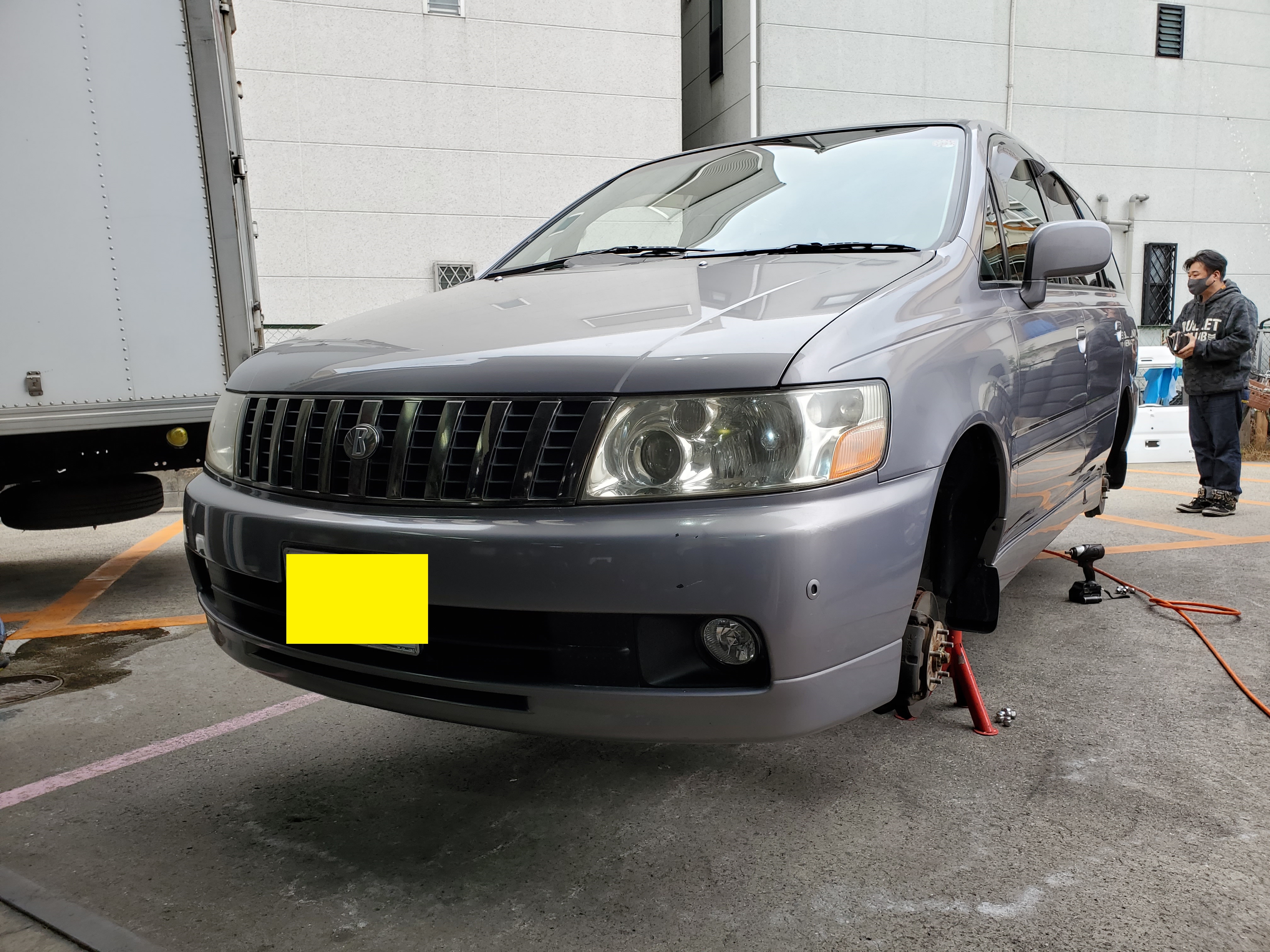 早速ジャッキアップをしてタイヤ交換作業にかかりました!