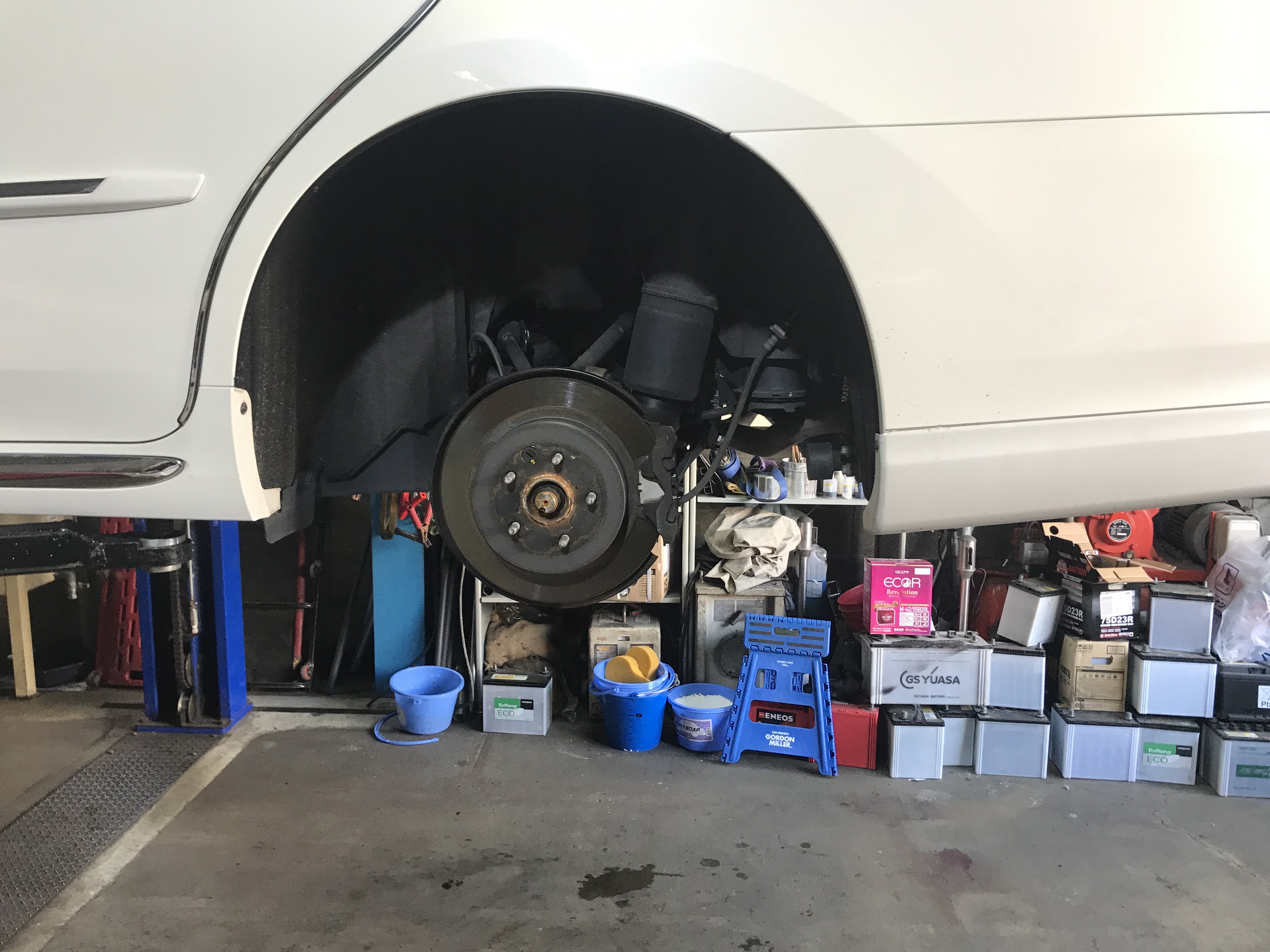 早速リフトアップしてタイヤ交換作業に