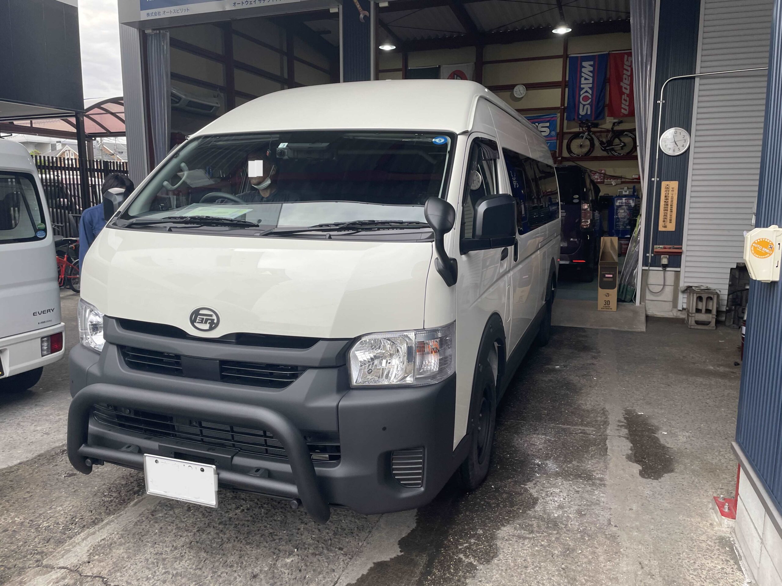 実績 実績【車販売】2023.05.26 注文販売・ハイエースお買い上げ頂きました。 こんばんは(^▽^)/ オートスピリット西垣です。 早速ですが注文販売で新車の ハイエーススーパーDX4WDを お買い上げ頂きました。 白のバンパーを前後マットブラックに 塗装をして車両はツートンカラーに塗装 オプションは色々取付ました。 グリルガード取付 オーバーフェンダー取り付け マットブラック塗装 ホイール塗装 ベット取付その他電装系も色々取付ました。 お買い上げ頂きありがとうございました。 今から納車に向かいます。 安心・安全・親切・丁寧・オートスピリット